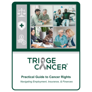 Triage Cancer's comprehensive Cancer Rights Guides introduce you to the cancer rights law topics that most people encounter in some way after a cancer diagnosis. Start with Cancer Rights: Navigating Employment, Insurance, & Finances, for general information, or explore our guides tailored for caregivers, young adults, and seniors!